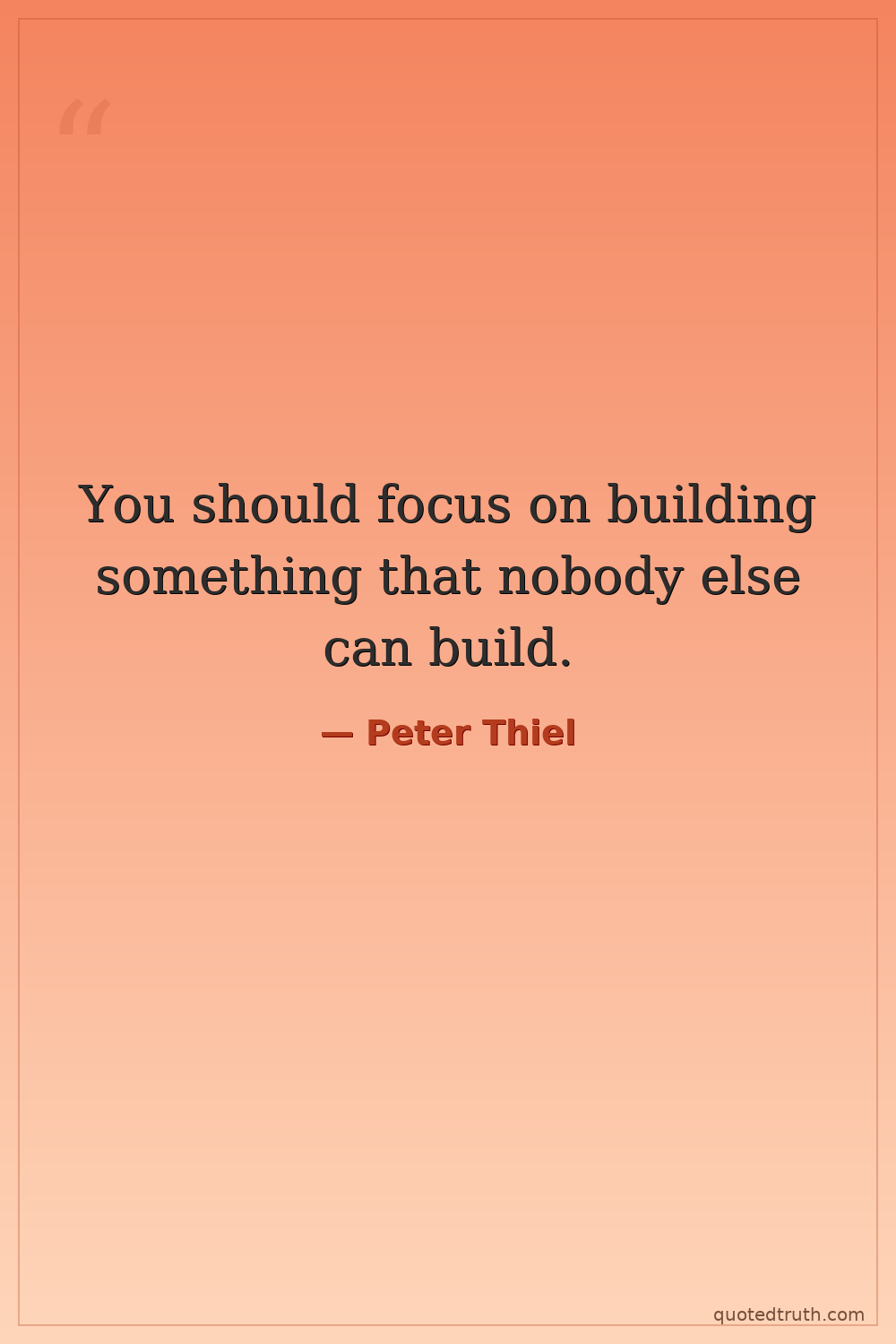 You should focus on building something that nobody else can build.