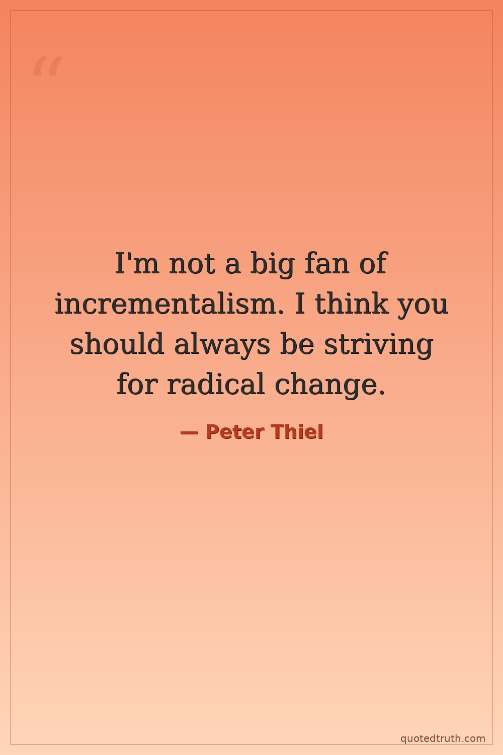 I'm not a big fan of incrementalism. I think you should always be striving for radical change.