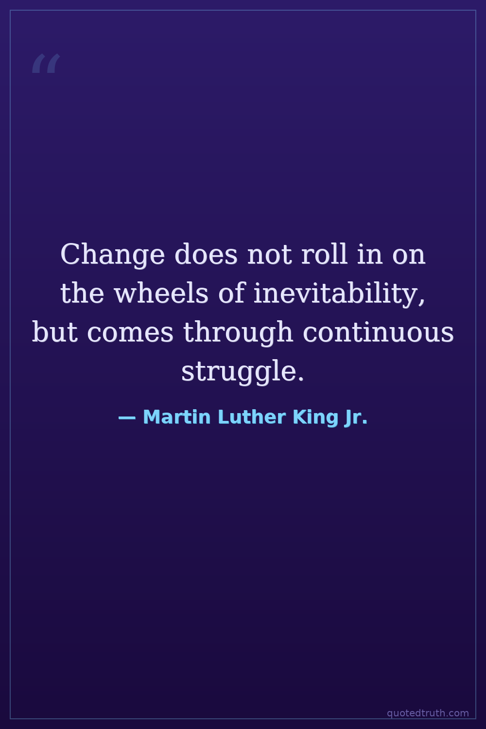 Change does not roll in on the wheels of inevitability, but comes through continuous struggle.