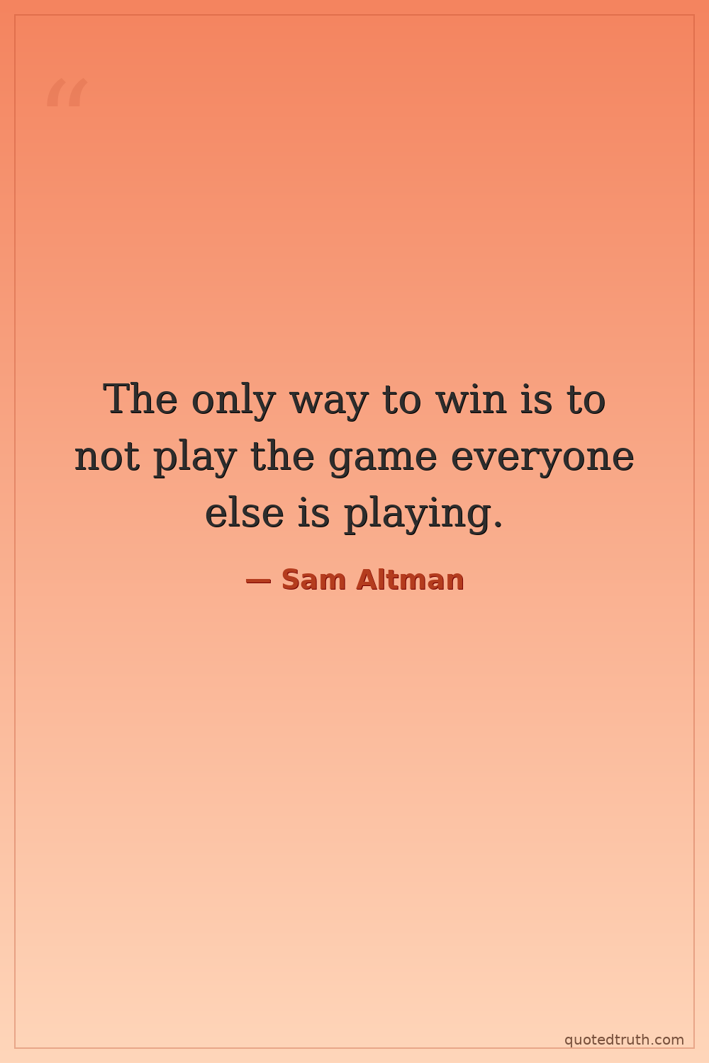 The only way to win is to not play the game everyone else is playing.