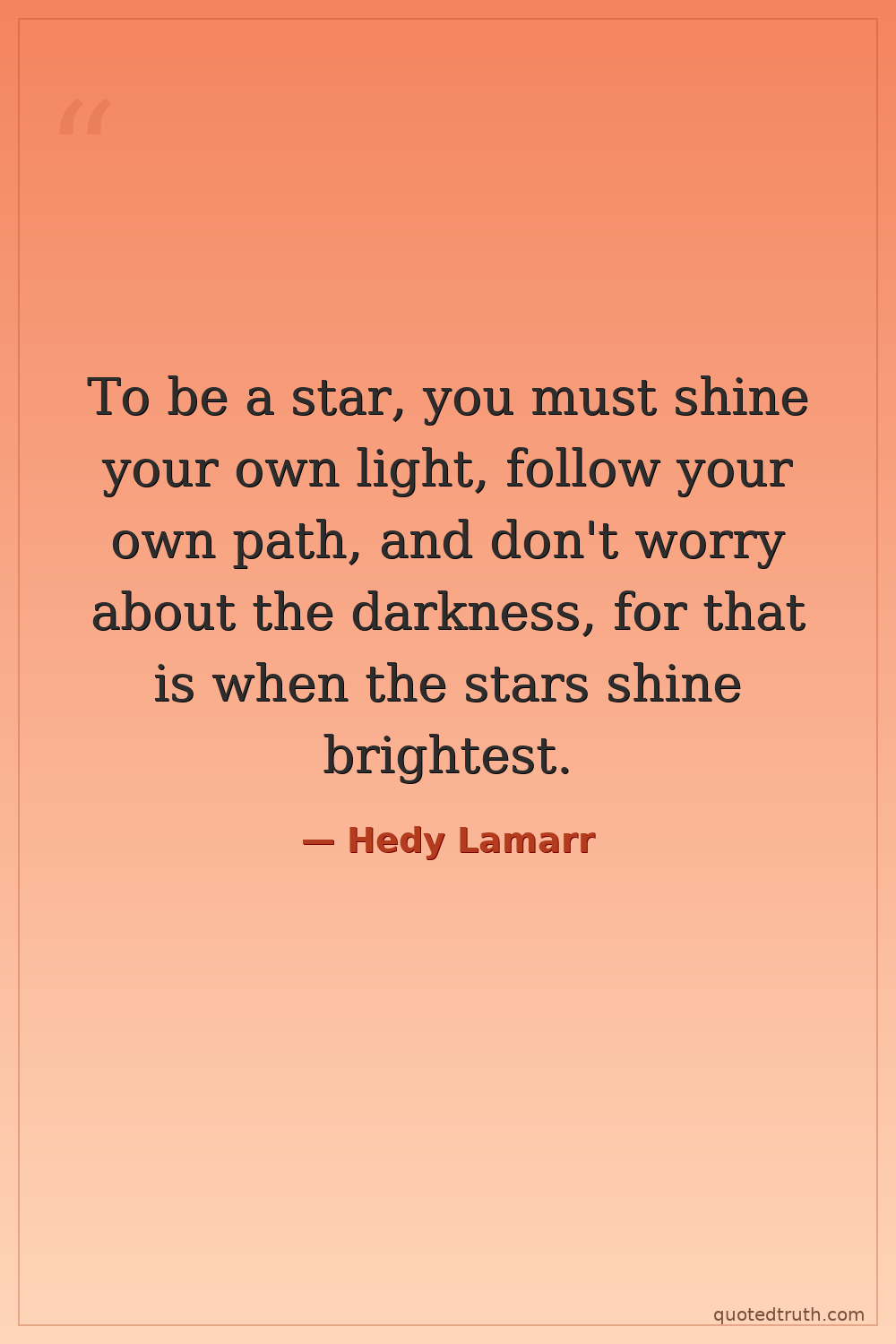 To be a star, you must shine your own light, follow your own path, and don't worry about the darkness, for that is when the stars shine brightest.