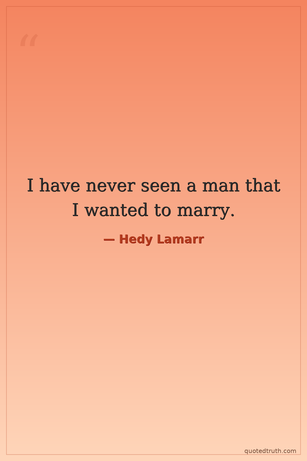 I have never seen a man that I wanted to marry.