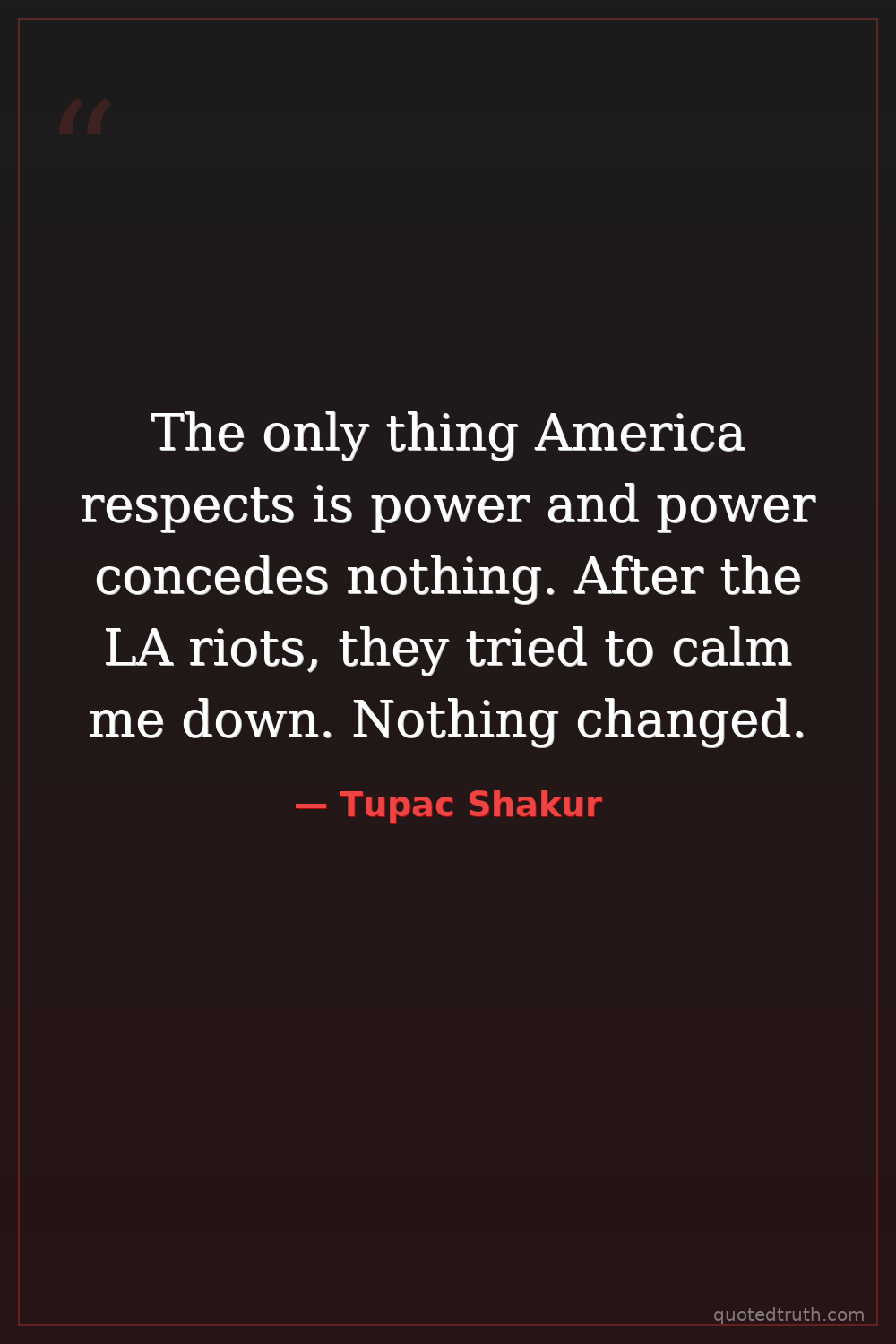 The only thing America respects is power and power concedes nothing. After the LA riots, they tried to calm me down. Nothing changed.