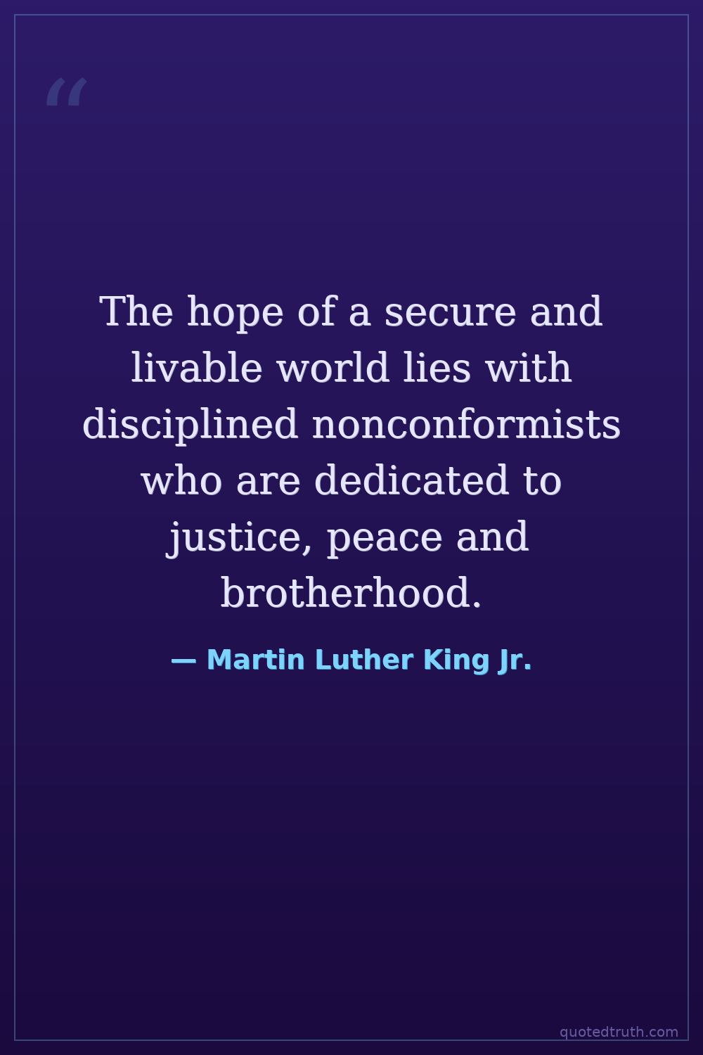 The hope of a secure and livable world lies with disciplined nonconformists who are dedicated to justice, peace and brotherhood.