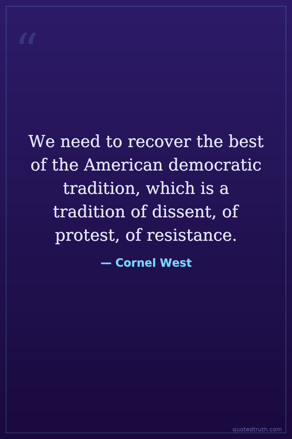 We need to recover the best of the American democratic tradition, which is a tradition of dissent, of protest, of resistance.