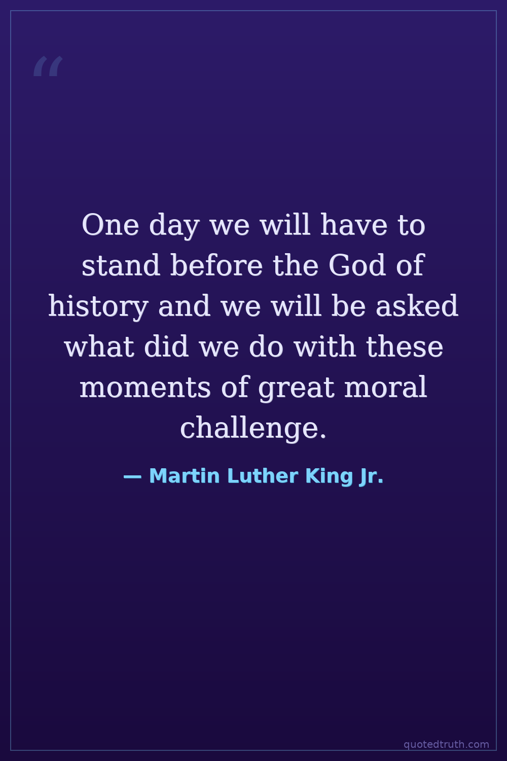One day we will have to stand before the God of history and we will be asked what did we do with these moments of great moral challenge.
