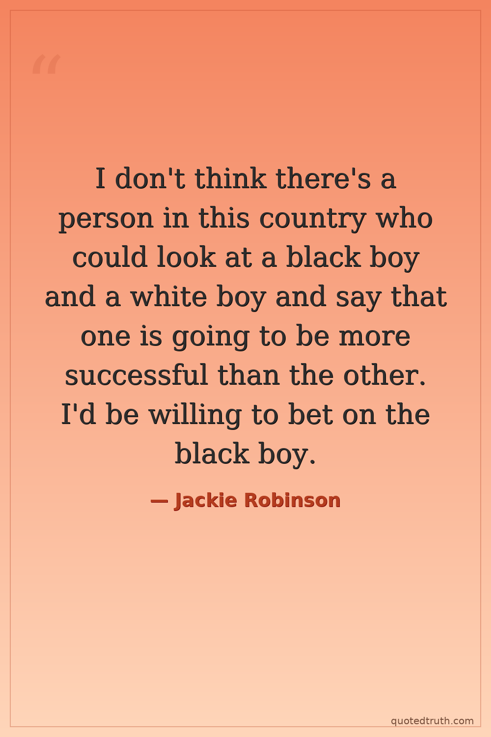 I don't think there's a person in this country who could look at a black boy and a white boy and say that one is going to be more successful than the other. I'd be willing to bet on the black boy.