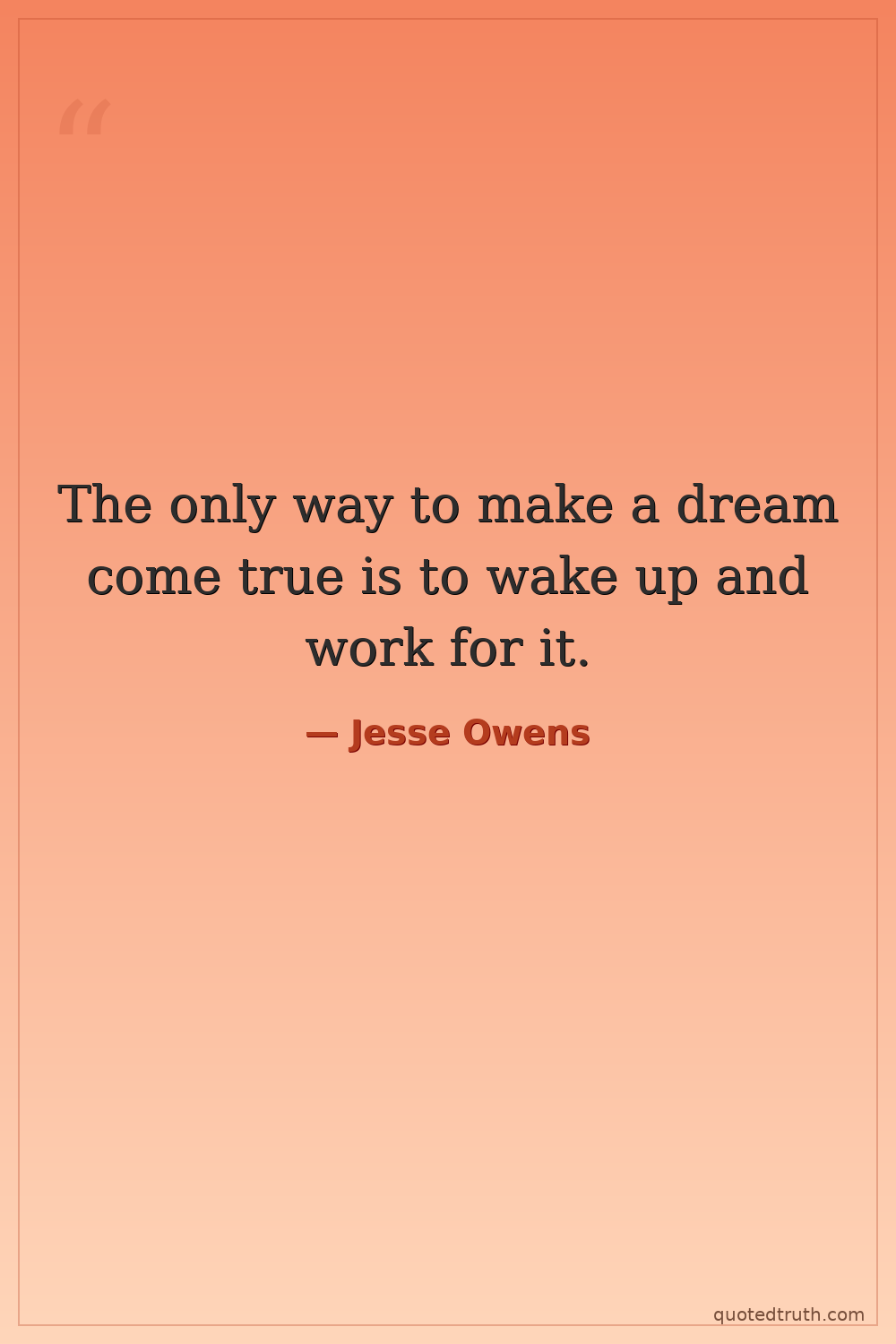The only way to make a dream come true is to wake up and work for it.
