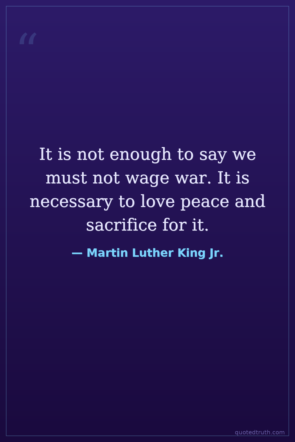 It is not enough to say we must not wage war. It is necessary to love peace and sacrifice for it.