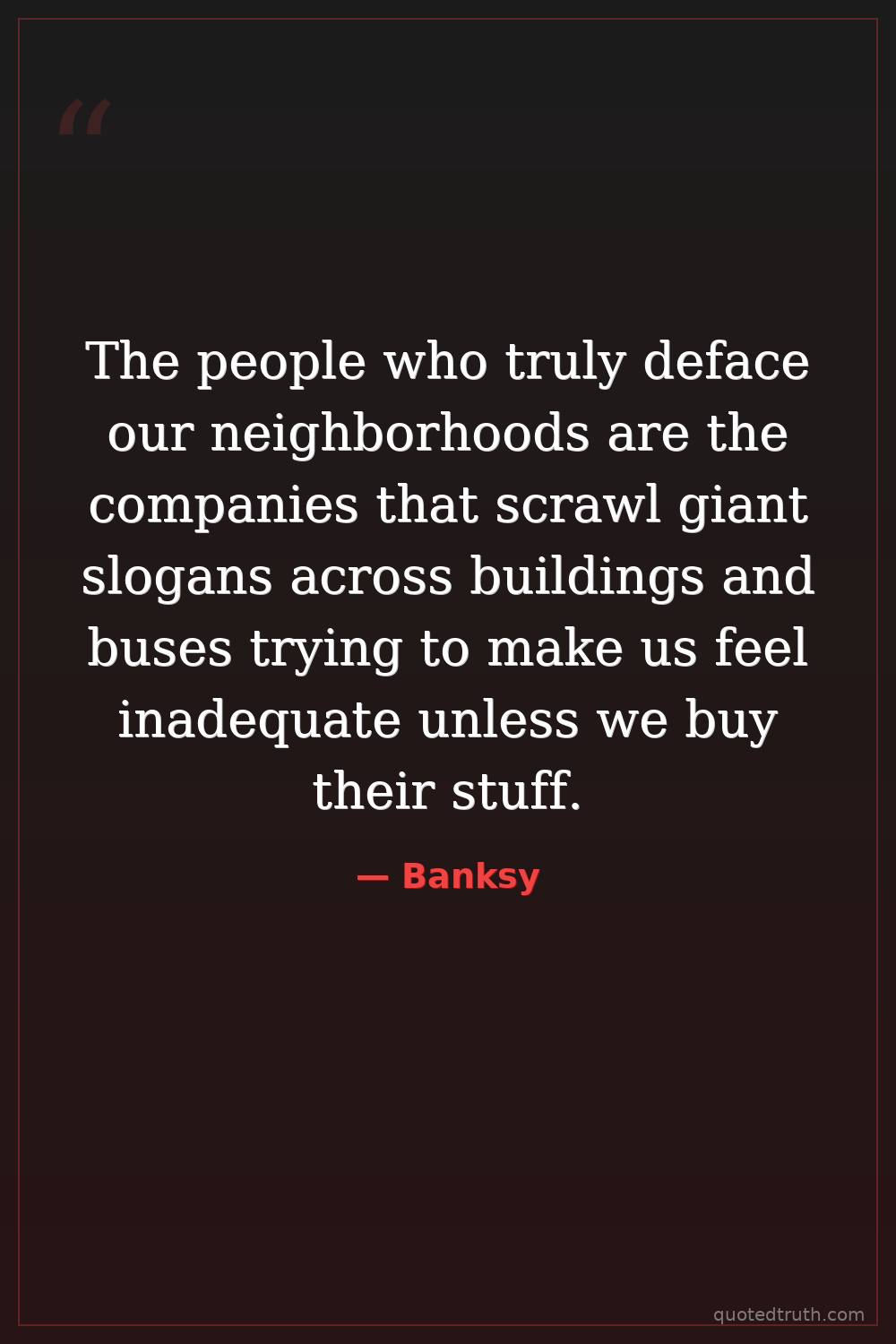 The people who truly deface our neighborhoods are the companies that scrawl giant slogans across buildings and buses trying to make us feel inadequate unless we buy their stuff.