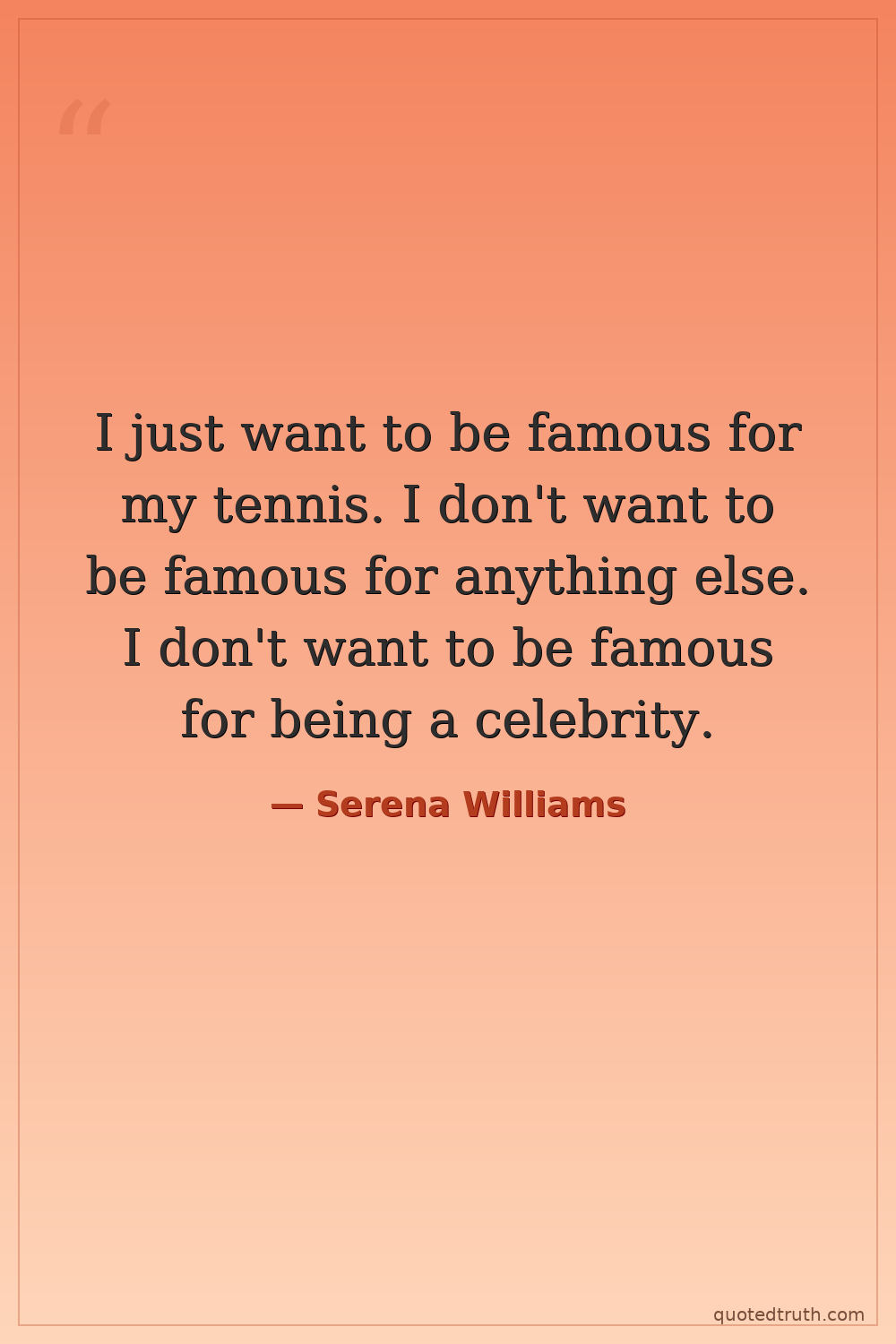 I just want to be famous for my tennis. I don't want to be famous for anything else. I don't want to be famous for being a celebrity.