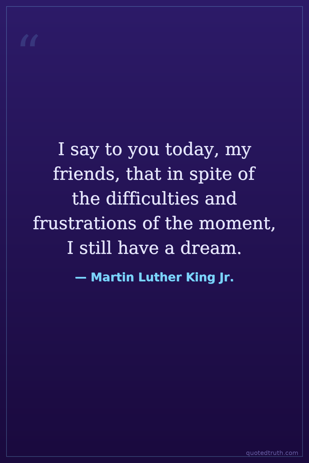 I say to you today, my friends, that in spite of the difficulties and frustrations of the moment, I still have a dream.
