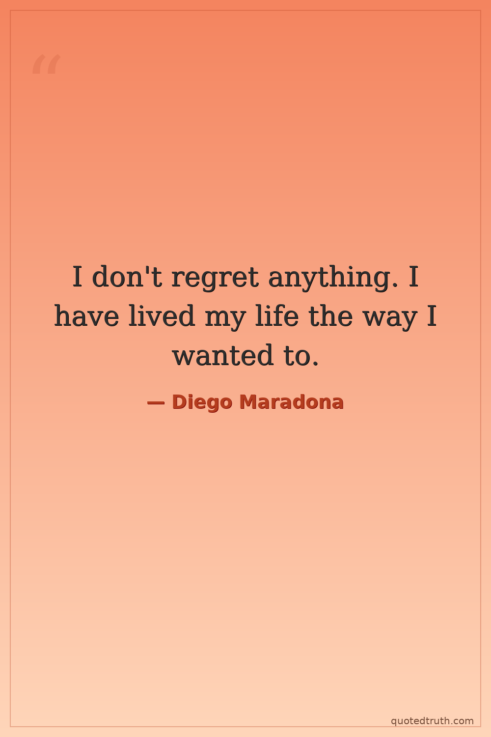 I don't regret anything. I have lived my life the way I wanted to.