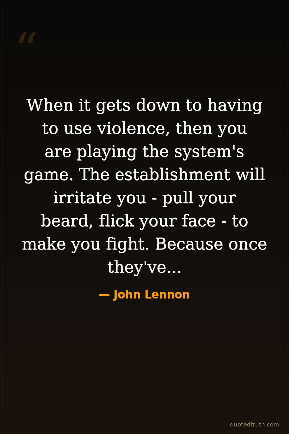 When it gets down to having to use violence, then you are playing the system's game. The establishment will irritate you - pull your beard, flick your face - to make you fight. Because once they've got you violent, then they know how to handle you. The only thing they don't know how to handle is non-violence and humor.