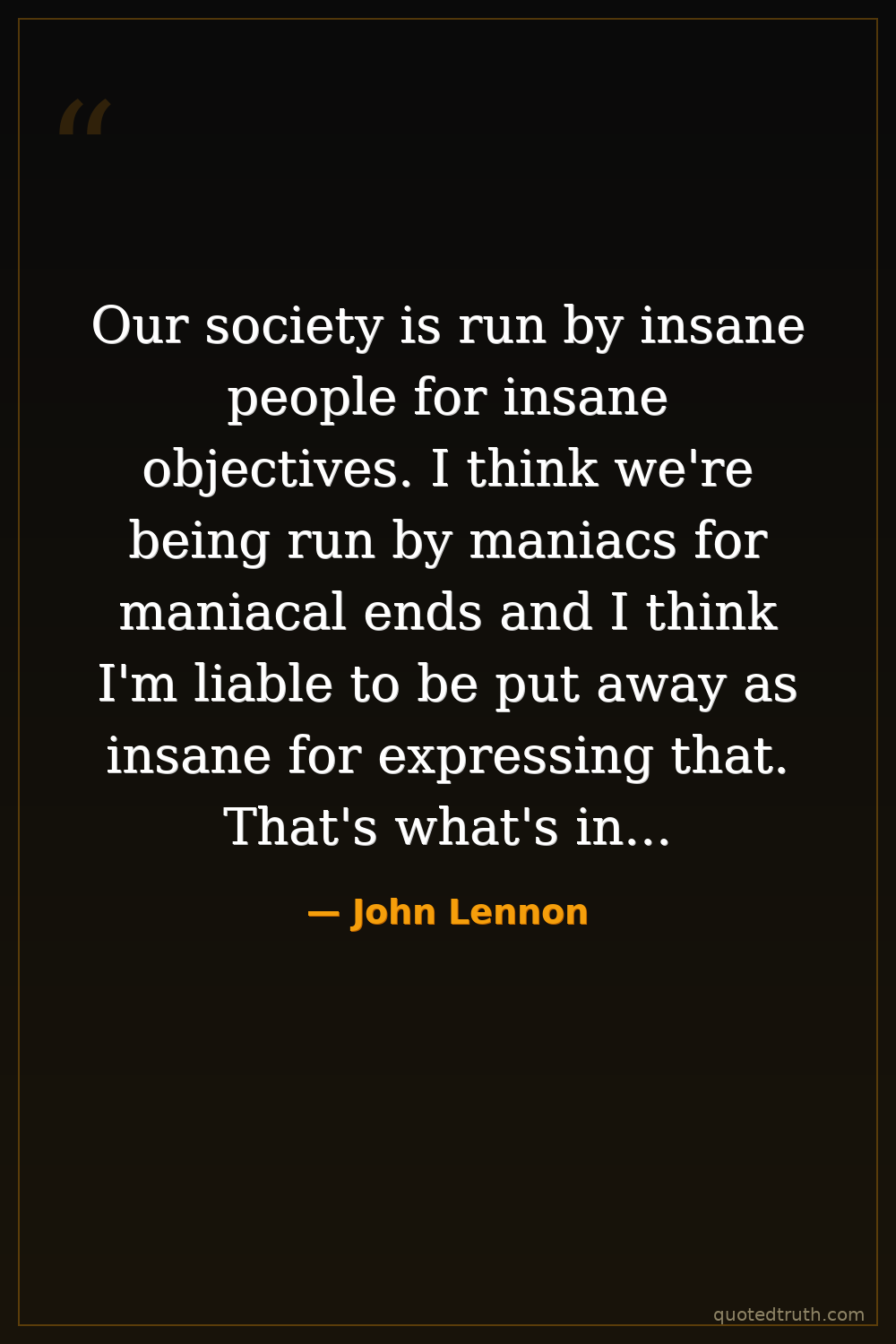 Our society is run by insane people for insane objectives. I think we're being run by maniacs for maniacal ends and I think I'm liable to be put away as insane for expressing that. That's what's insane about it.