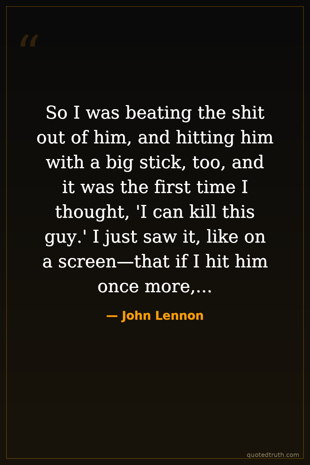 So I was beating the shit out of him, and hitting him with a big stick, too, and it was the first time I thought, 'I can kill this guy.' I just saw it, like on a screen—that if I hit him once more, that was going to be it.