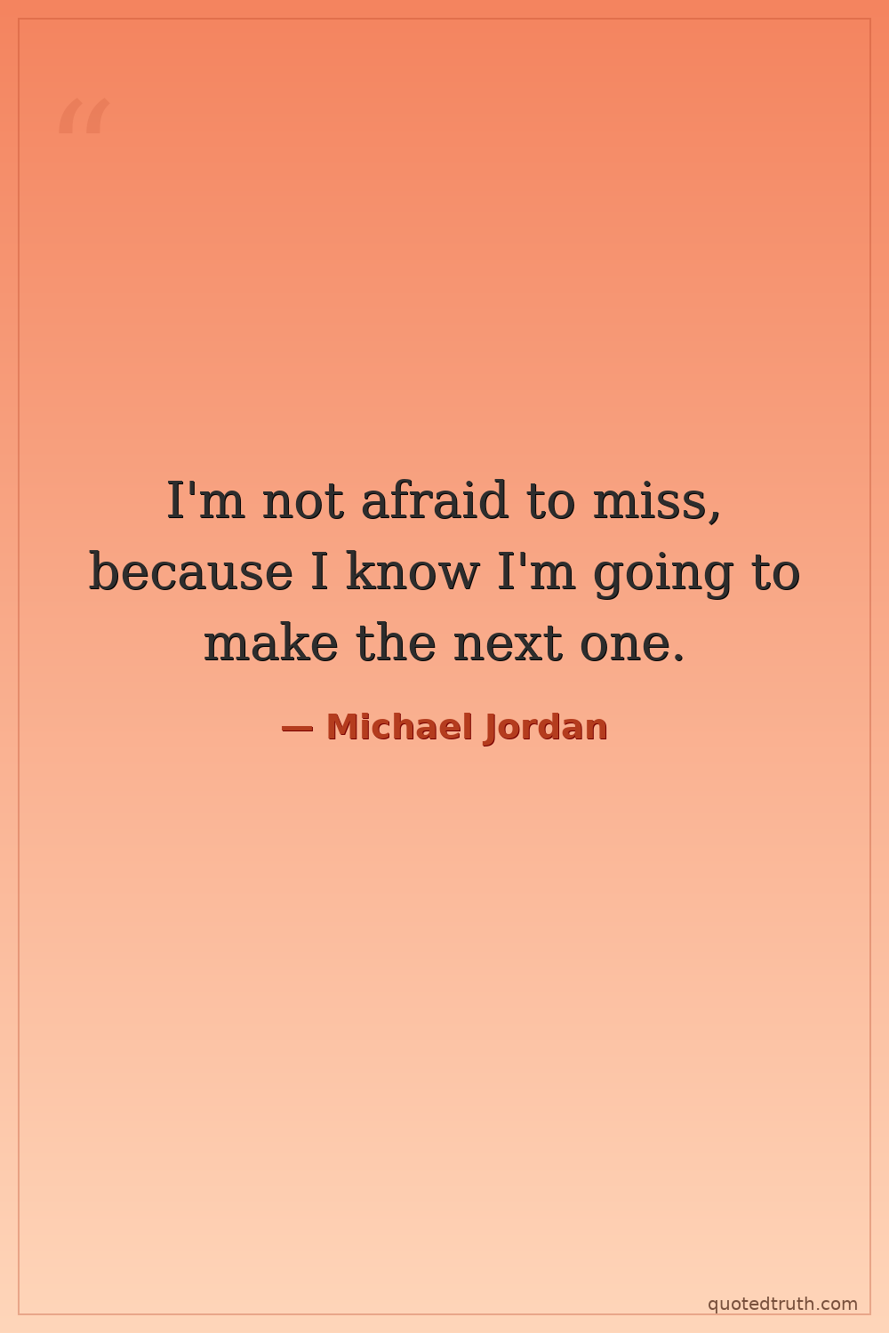 I'm not afraid to miss, because I know I'm going to make the next one.