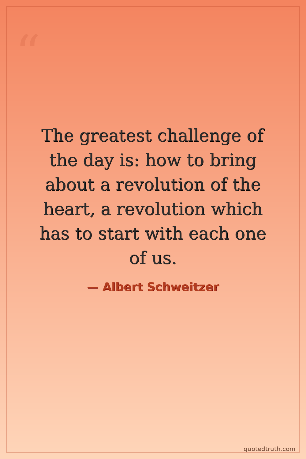 The greatest challenge of the day is: how to bring about a revolution of the heart, a revolution which has to start with each one of us.