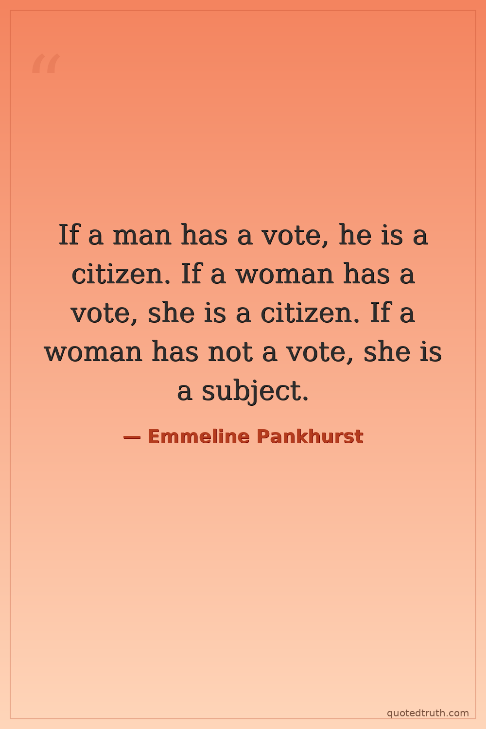 If a man has a vote, he is a citizen. If a woman has a vote, she is a citizen. If a woman has not a vote, she is a subject.