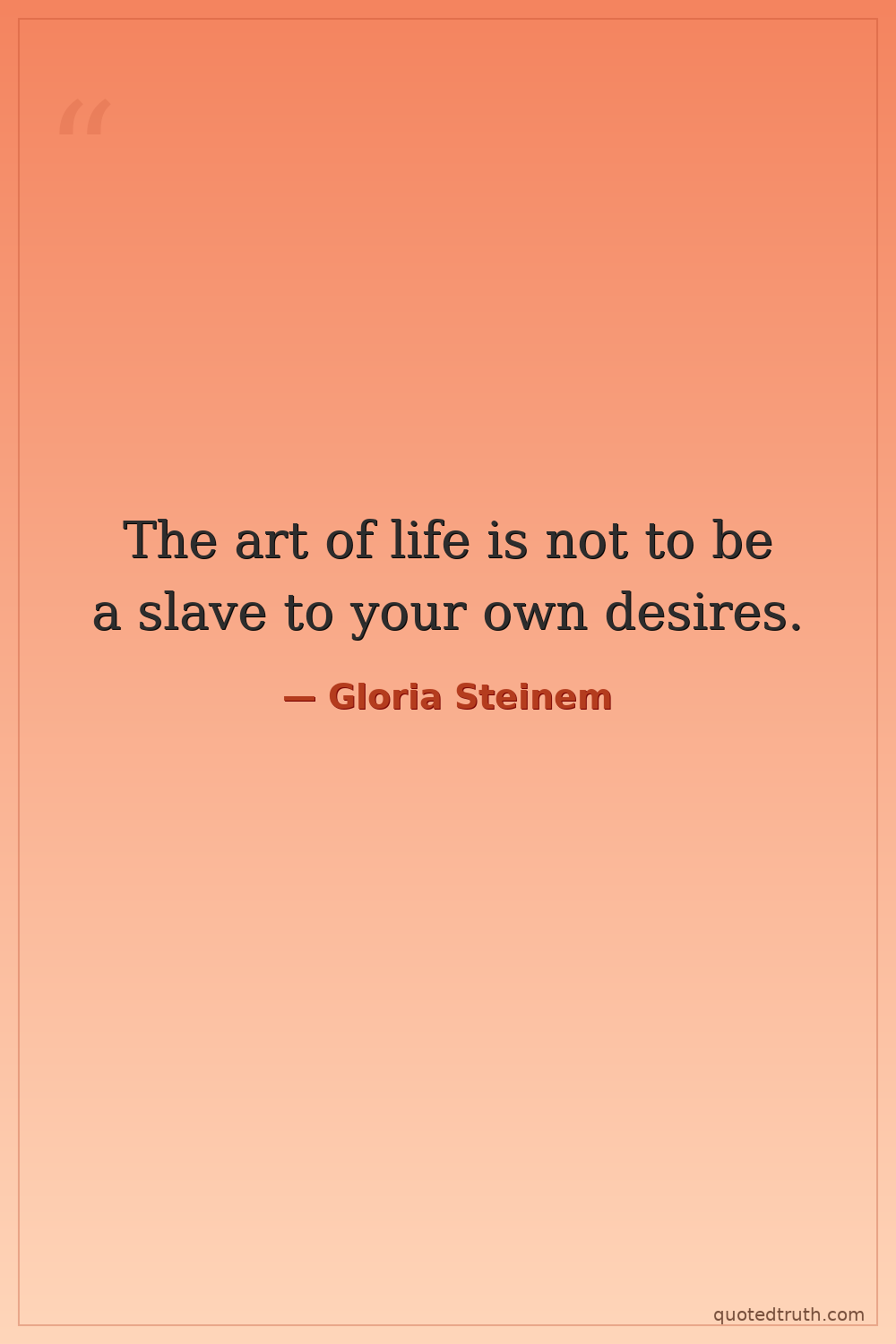 The art of life is not to be a slave to your own desires.