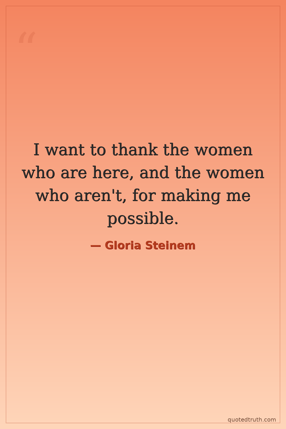 I want to thank the women who are here, and the women who aren't, for making me possible.
