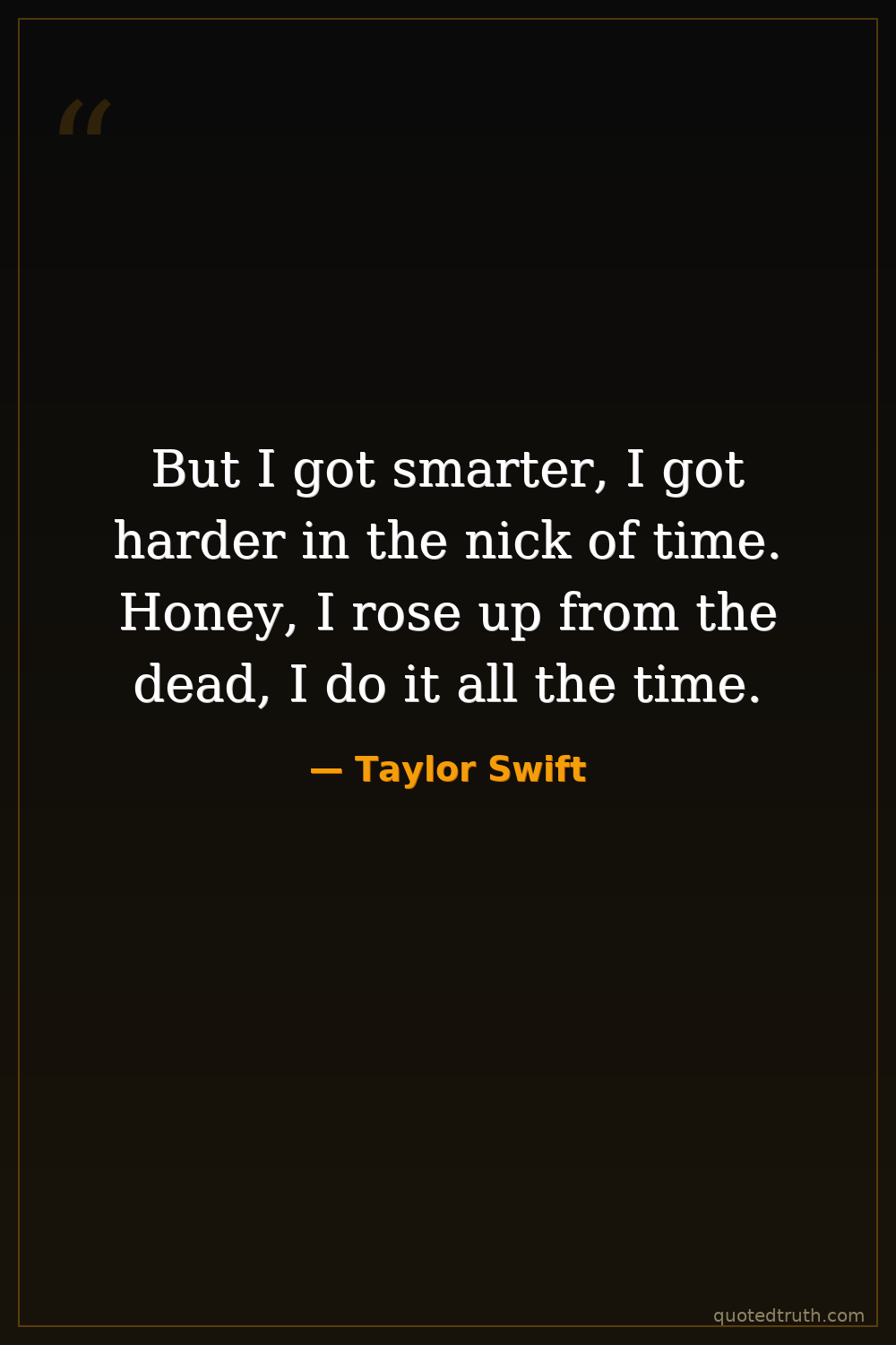 But I got smarter, I got harder in the nick of time. Honey, I rose up from the dead, I do it all the time.