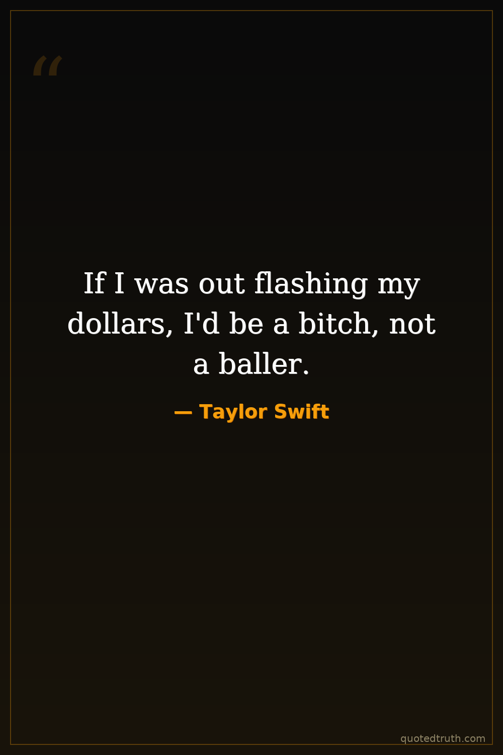 If I was out flashing my dollars, I'd be a bitch, not a baller.