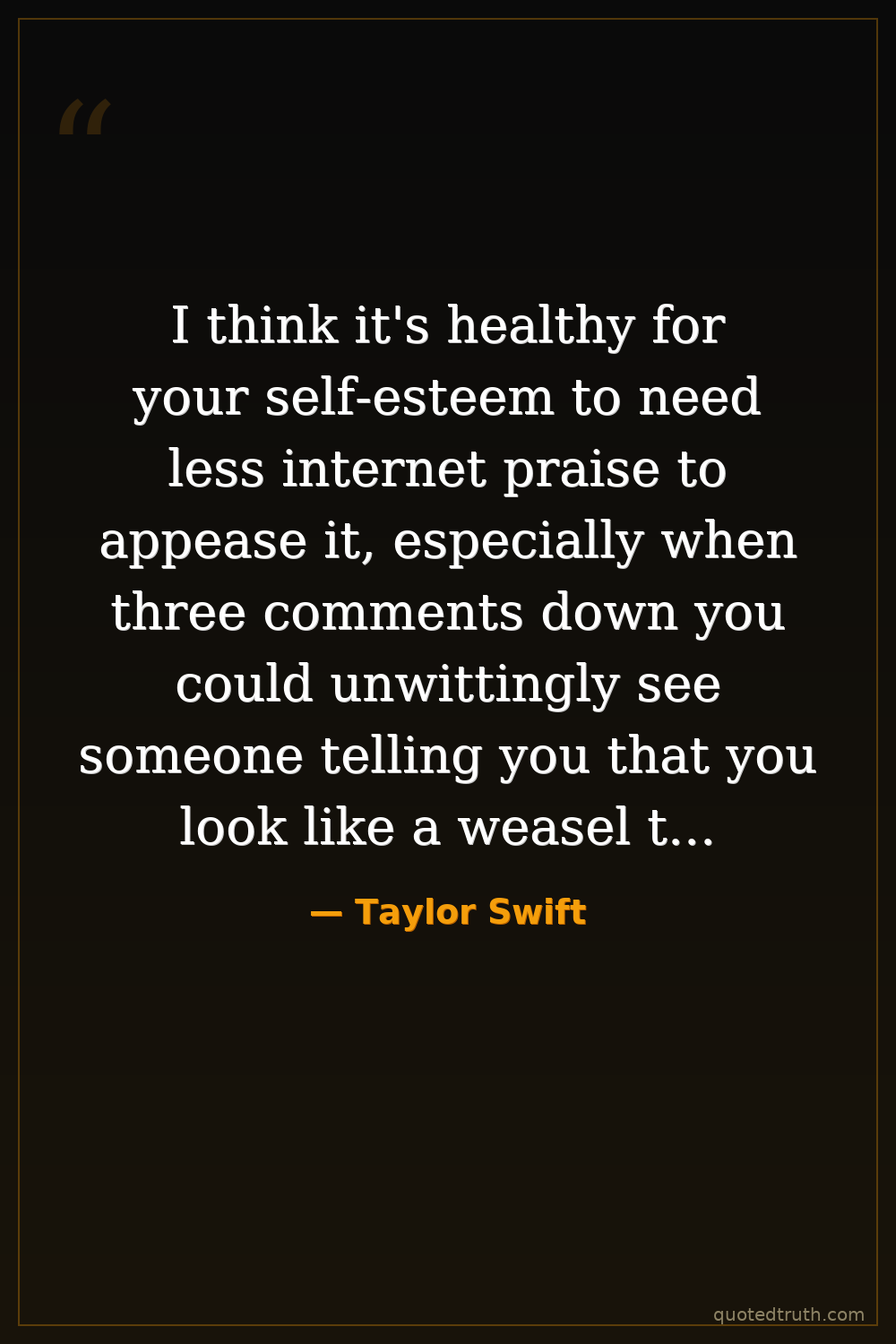 I think it's healthy for your self-esteem to need less internet praise to appease it, especially when three comments down you could unwittingly see someone telling you that you look like a weasel that got hit by a truck and stitched back together by a drunk taxidermist. An actual comment I received once.