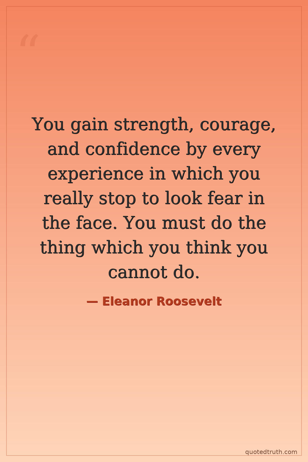 You gain strength, courage, and confidence by every experience in which you really stop to look fear in the face. You must do the thing which you think you cannot do.