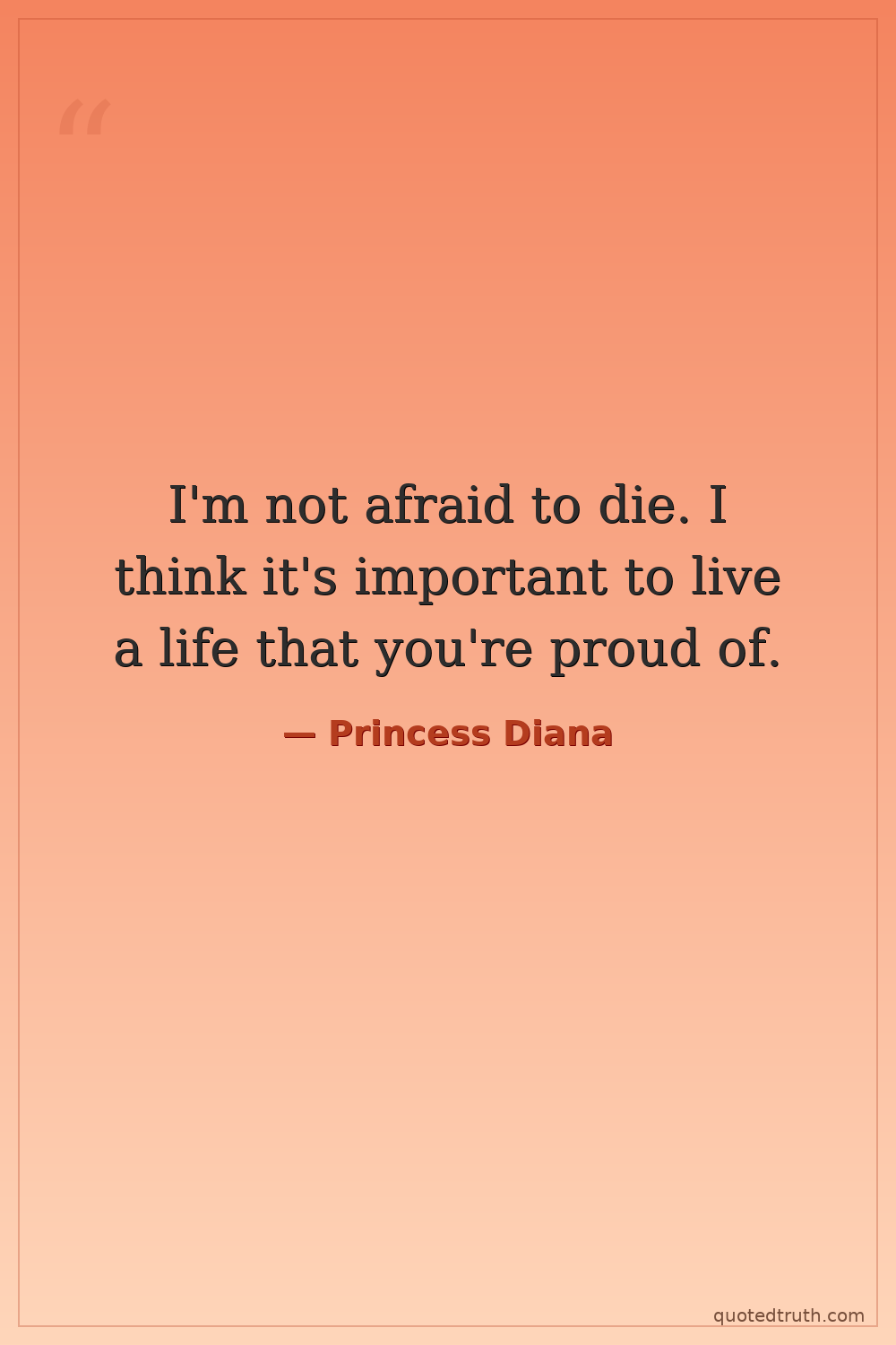 I'm not afraid to die. I think it's important to live a life that you're proud of.
