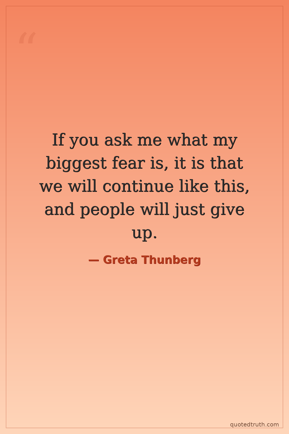 "Adults keep saying we owe it to the young people, to give them hope, but I don't want your hope. I don't want you to be hopeful. I want you to panic. I want you to feel the fear I feel every day. I wa…"