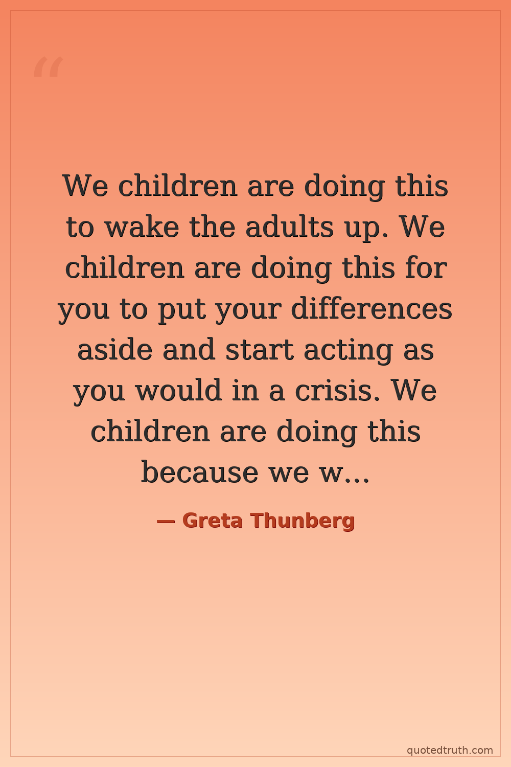 We children are doing this to wake the adults up. We children are doing this for you to put your differences aside and start acting as you would in a crisis. We children are doing this because we want our hope back.