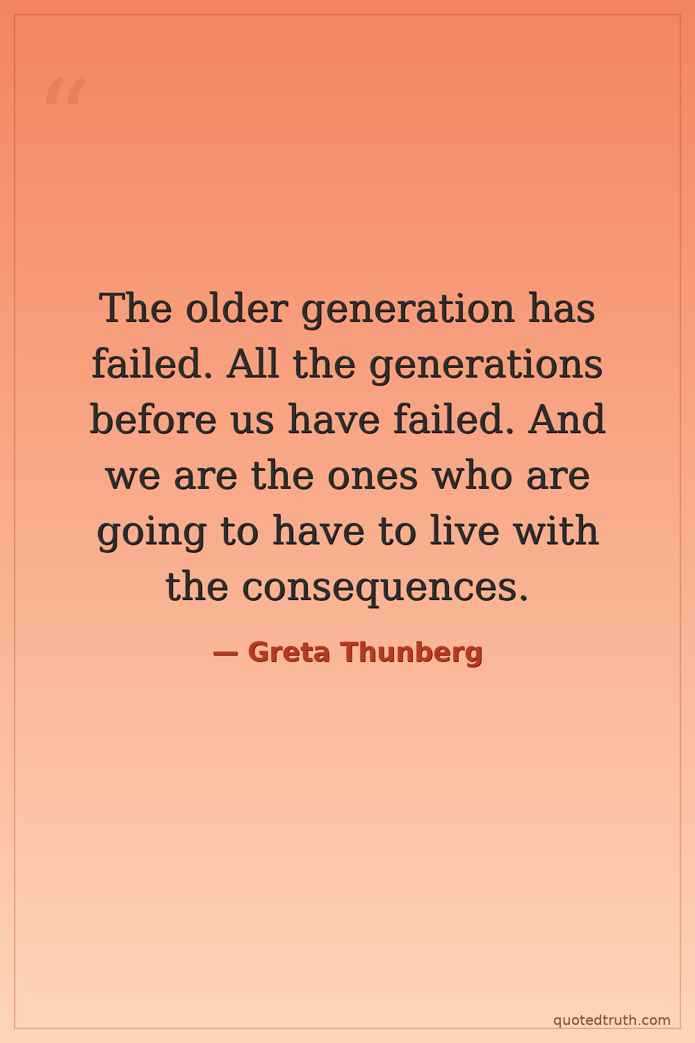 The older generation has failed. All the generations before us have failed. And we are the ones who are going to have to live with the consequences.