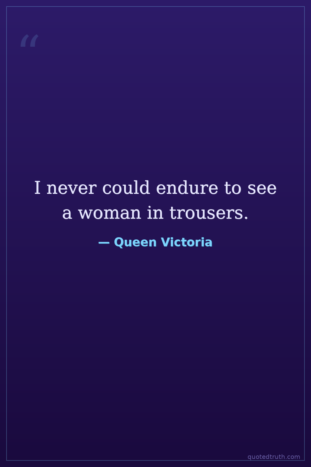 I never could endure to see a woman in trousers.