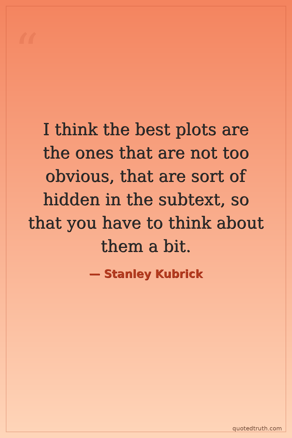 I think the best plots are the ones that are not too obvious, that are sort of hidden in the subtext, so that you have to think about them a bit.