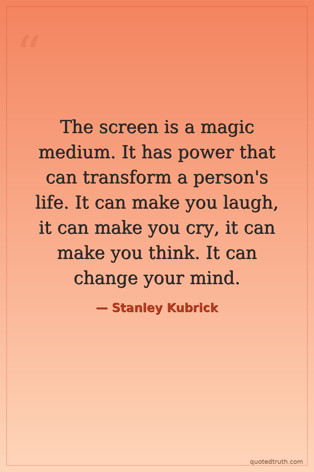 The screen is a magic medium. It has power that can transform a person's life. It can make you laugh, it can make you cry, it can make you think. It can change your mind.