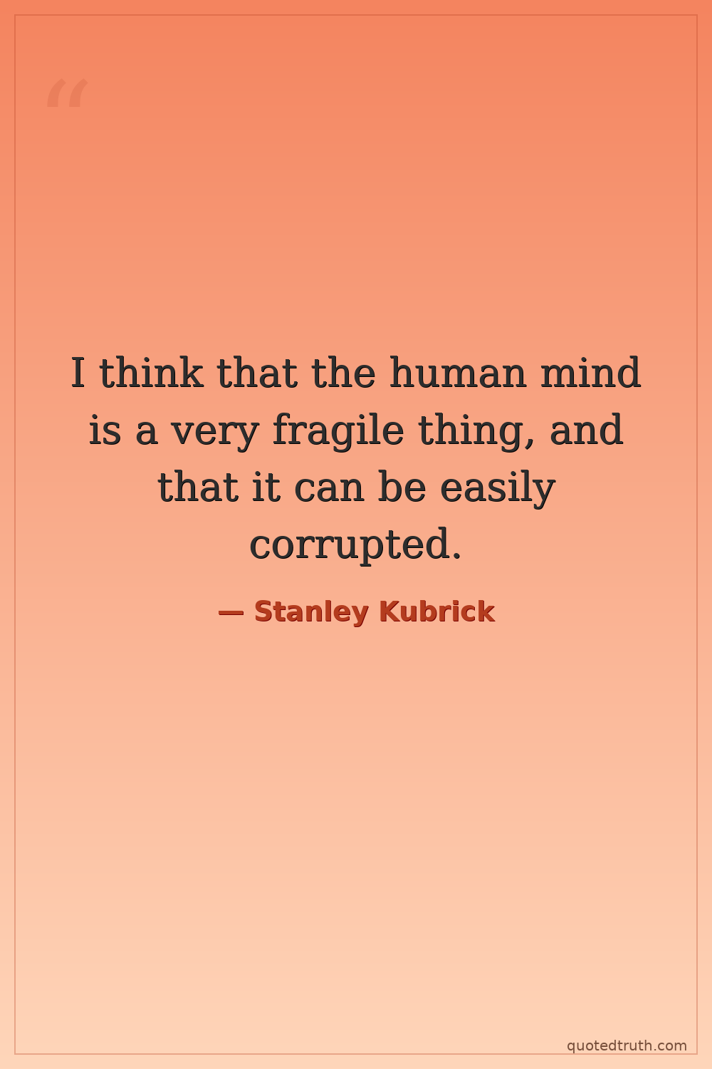 I think that the human mind is a very fragile thing, and that it can be easily corrupted.