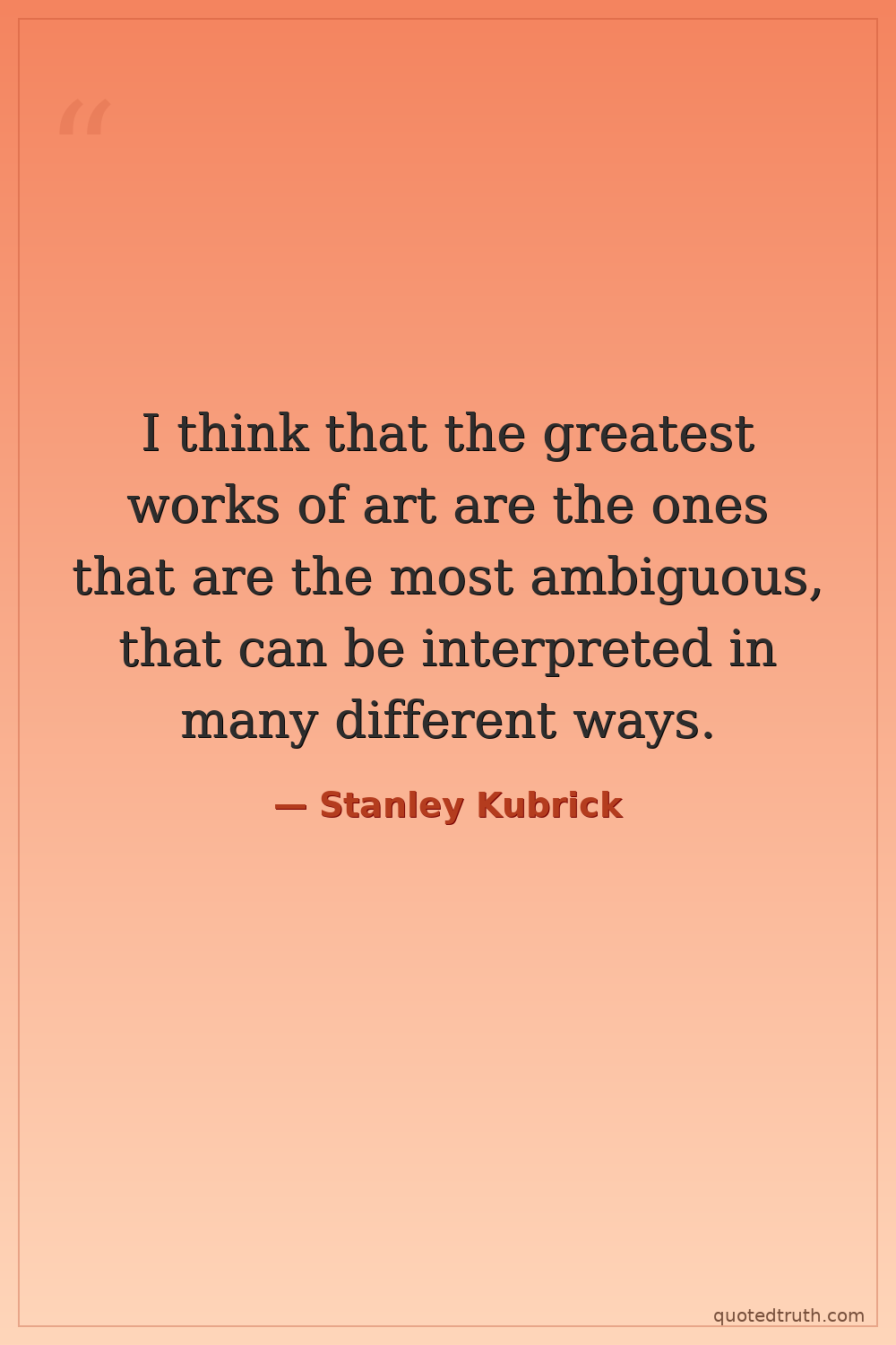 I think that the greatest works of art are the ones that are the most ambiguous, that can be interpreted in many different ways.