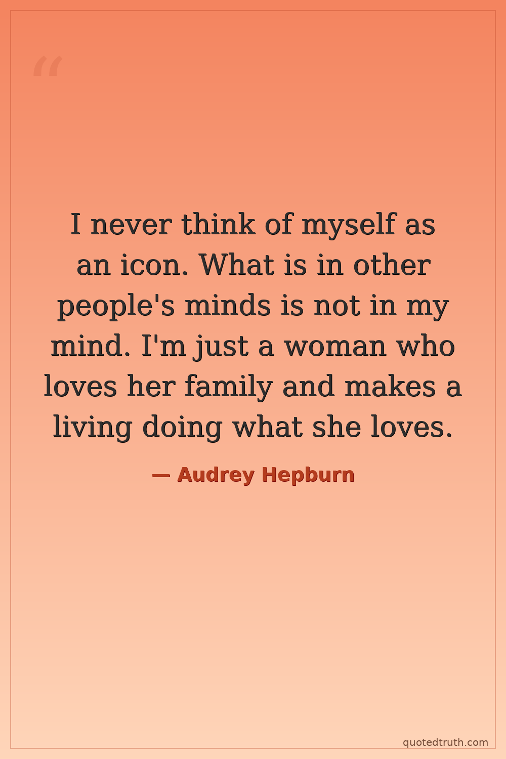 I never think of myself as an icon. What is in other people's minds is not in my mind. I'm just a woman who loves her family and makes a living doing what she loves.