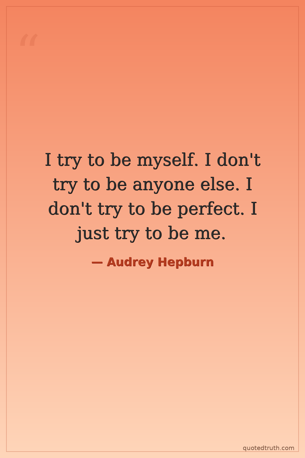 I try to be myself. I don't try to be anyone else. I don't try to be perfect. I just try to be me.