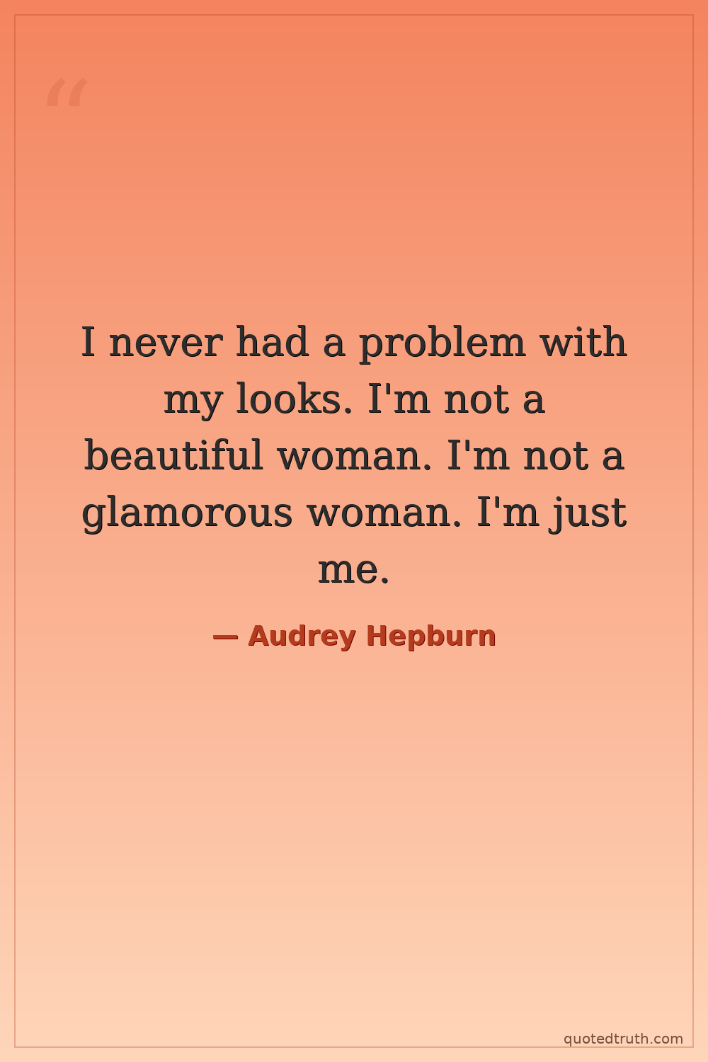 I never had a problem with my looks. I'm not a beautiful woman. I'm not a glamorous woman. I'm just me.