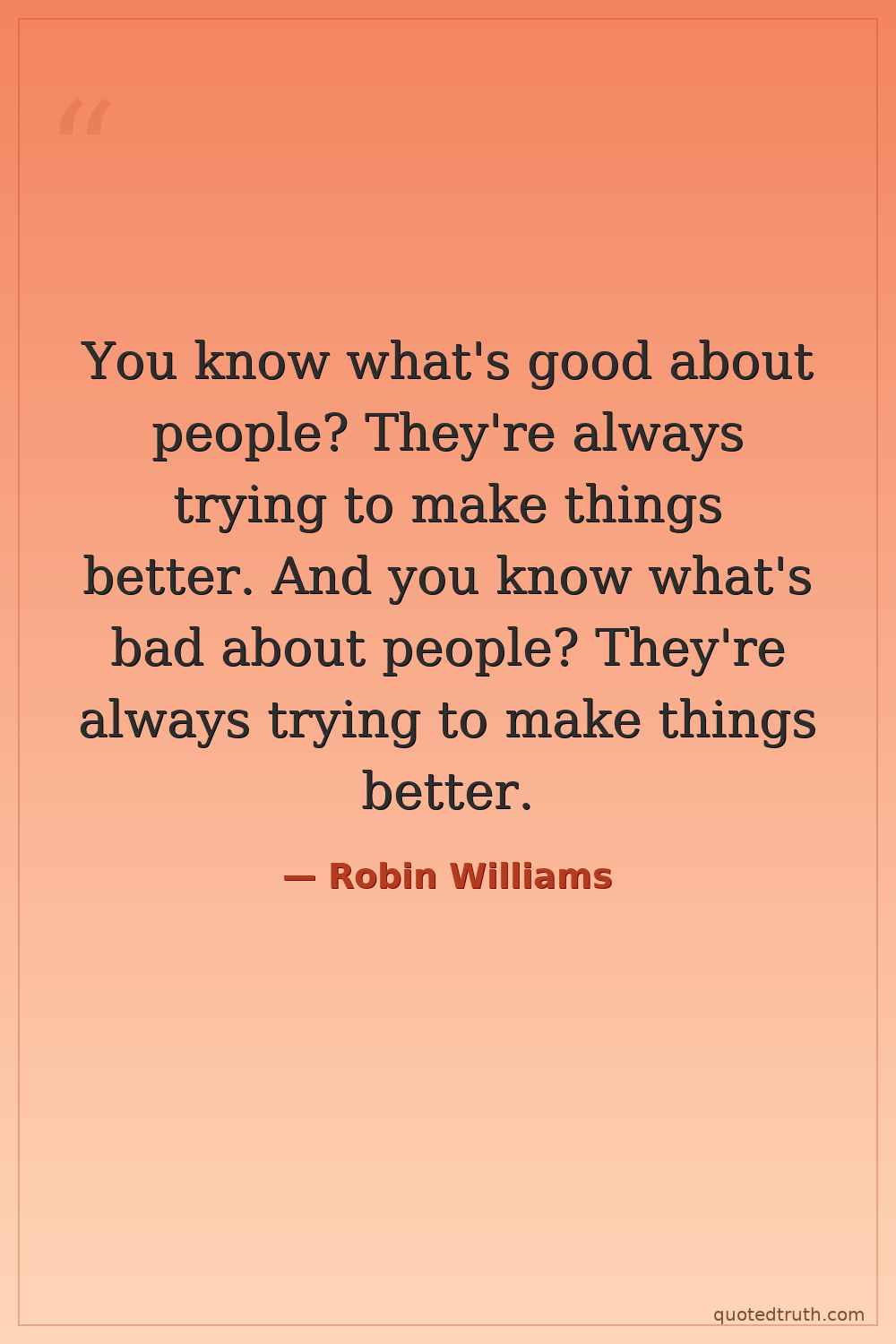 You know what's good about people? They're always trying to make things better. And you know what's bad about people? They're always trying to make things better.