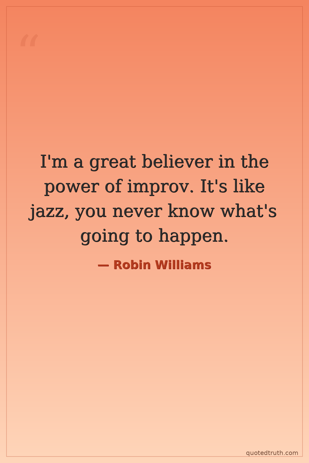 I'm a great believer in the power of improv. It's like jazz, you never know what's going to happen.