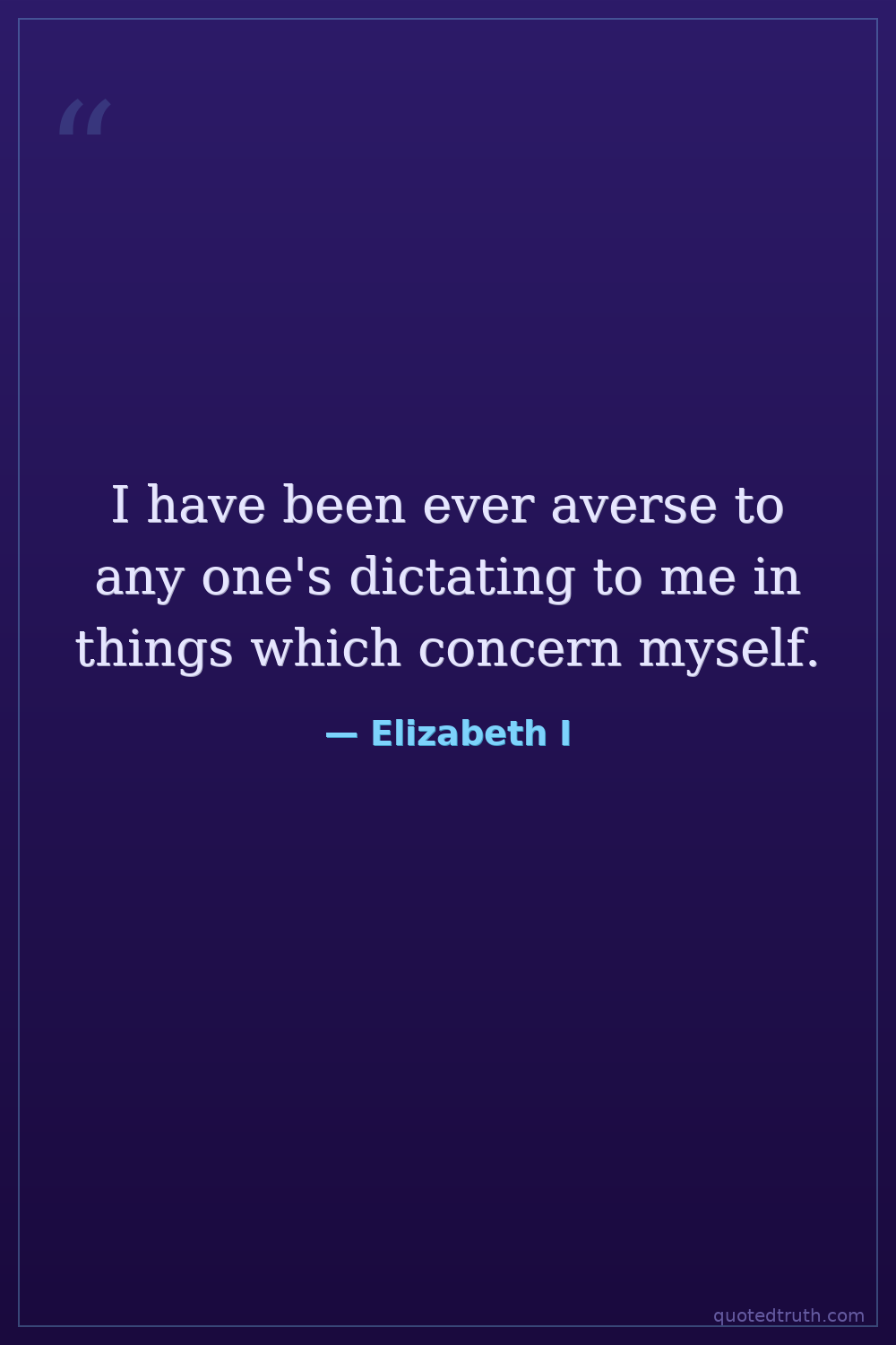 I have been ever averse to any one's dictating to me in things which concern myself.