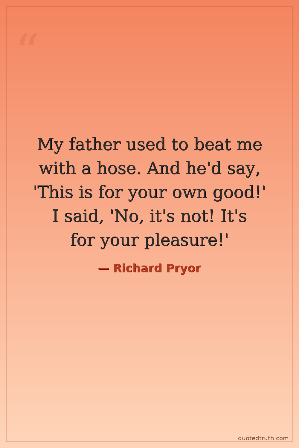 My father used to beat me with a hose. And he'd say, 'This is for your own good!' I said, 'No, it's not! It's for your pleasure!'