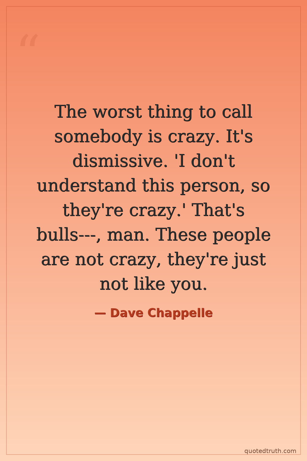 The worst thing to call somebody is crazy. It's dismissive. 'I don't understand this person, so they're crazy.' That's bulls---, man. These people are not crazy, they're just not like you.