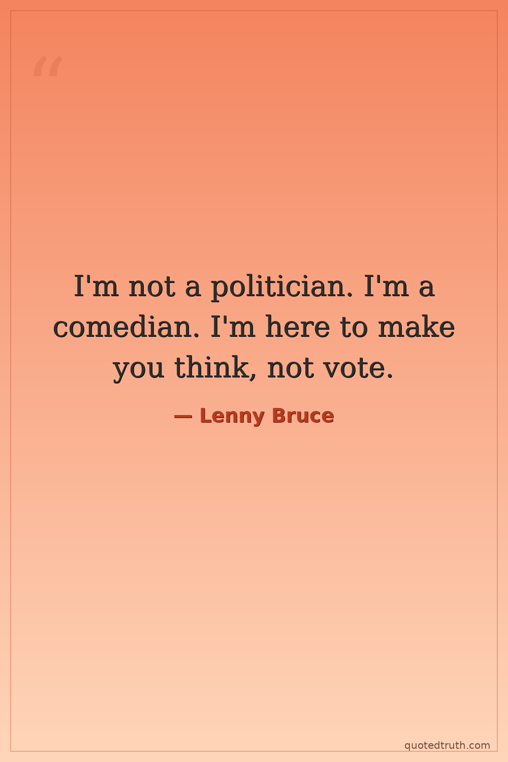 I'm not a politician. I'm a comedian. I'm here to make you think, not vote.