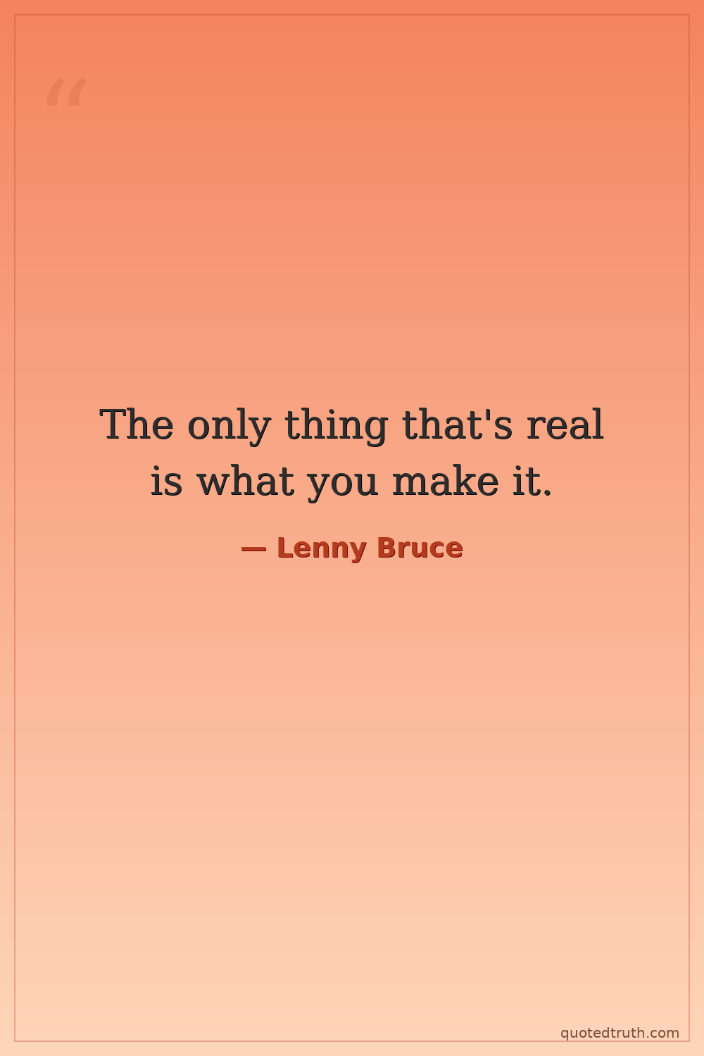 The only thing that's real is what you make it.