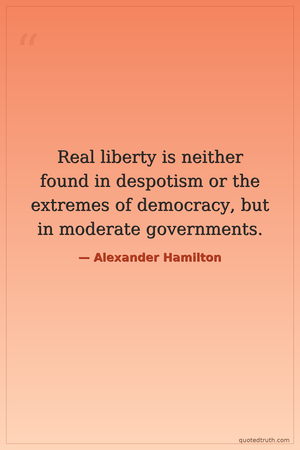 Real liberty is neither found in despotism or the extremes of democracy, but in moderate governments.