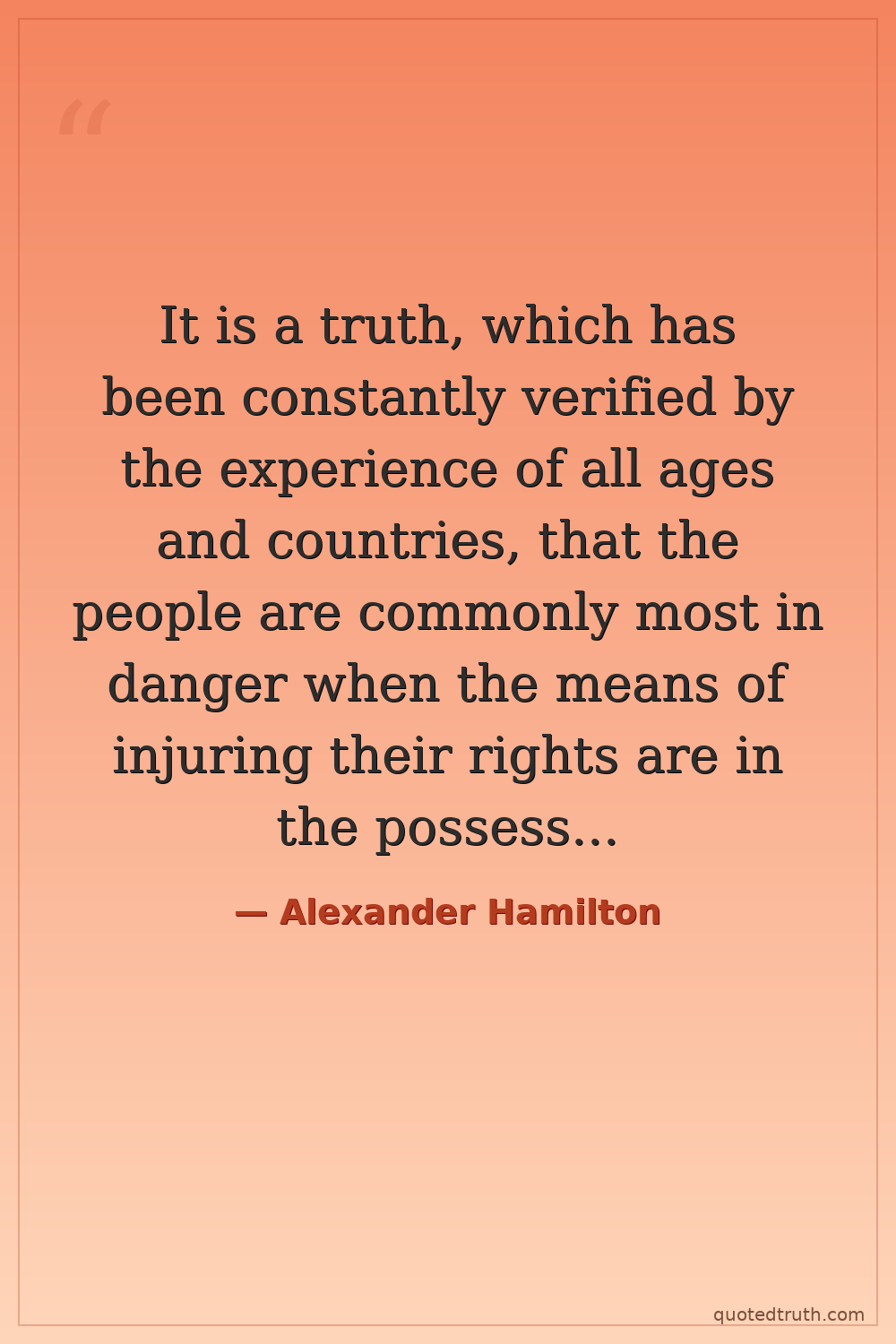It is a truth, which has been constantly verified by the experience of all ages and countries, that the people are commonly most in danger when the means of injuring their rights are in the possession of those whom they themselves have elected for the protection of them.
